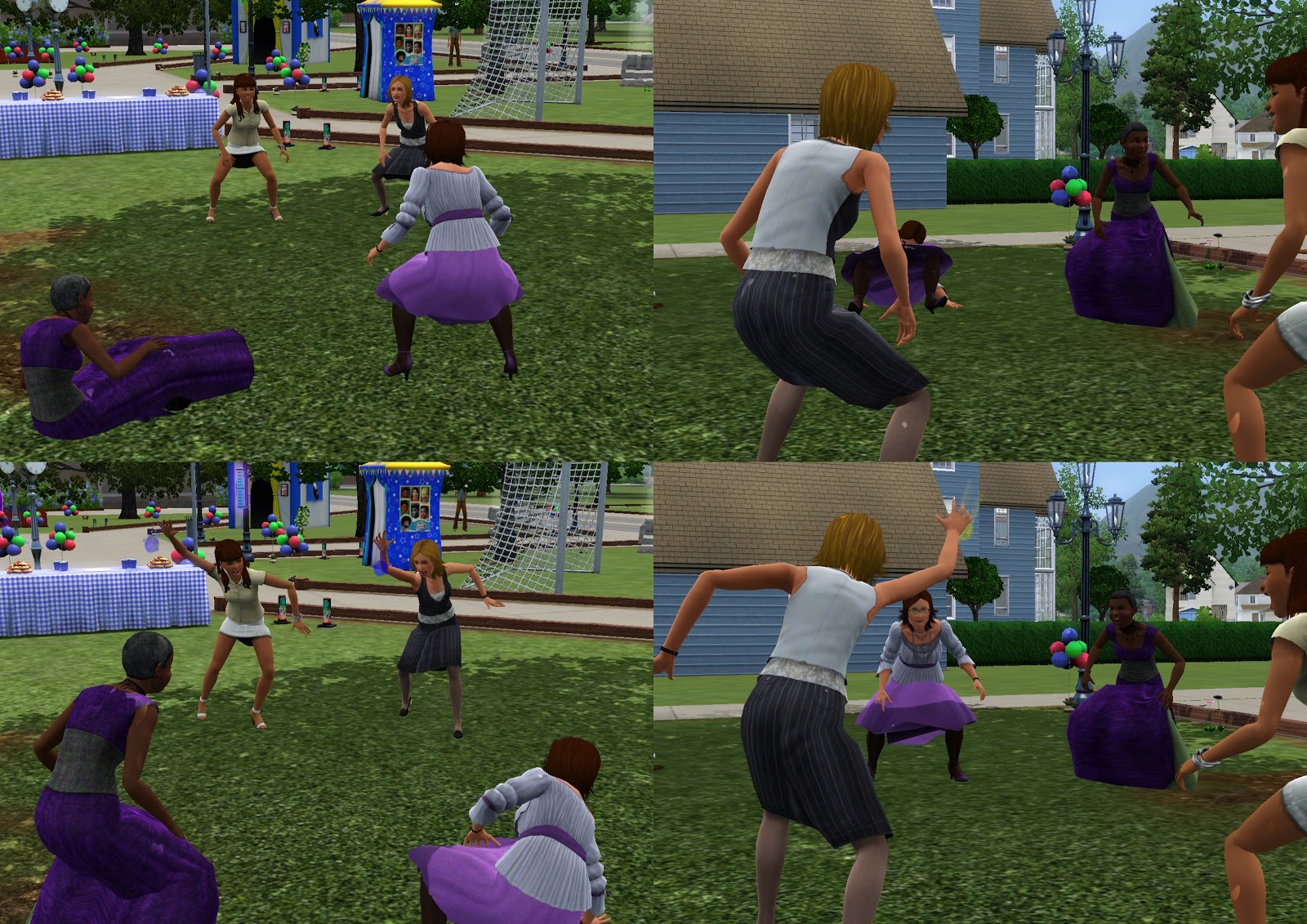 Następnego dnia Diana nie zwracając uwagi na Jamesa wychodzi do parku na festiwal simowy :). Na nim bawi się świetnie urządzając bitwę na balony z wodą :3.